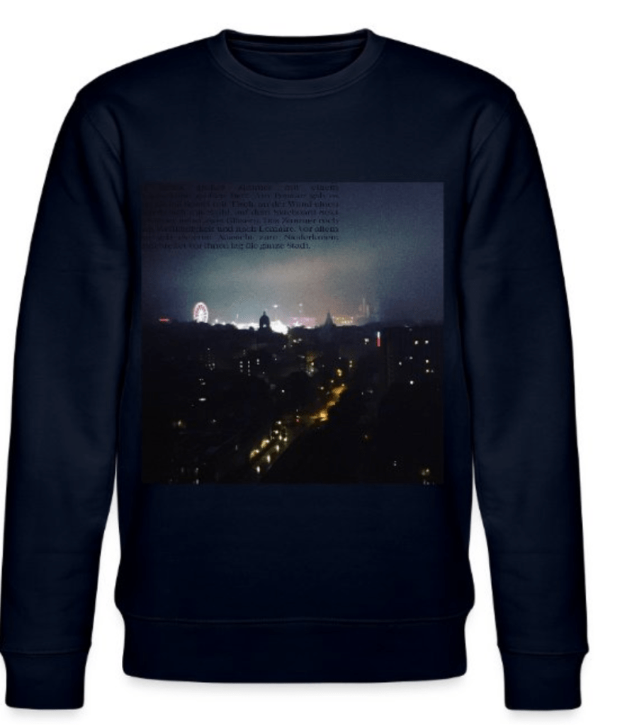 Die Textpassage auf dem Sweater entstammt dem Kapitel »Hamburg leuchtete« aus »Eine bessere Welt ist möglich (Sex und Sozialkritik III)»